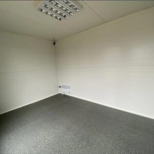 Grazie ai pannelli sandwich isolanti da 10 cm su pareti, soffitto e pavimento, il modulo garantisce un’eccellente efficienza energetica e comfort termico. Le ampie finestre fisse offrono una luminosità naturale ideale per ambienti commerciali, mentre l’impianto elettrico conforme agli standard CE assicura la piena funzionalità immediata.